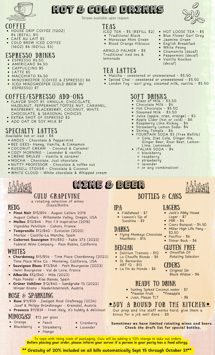 In conclusion, Gulu-Gulu Cafe is not just a place to eat; it's a mosaic of experiences with every sip and bite. With its user-friendly service and a menu that caters to diverse tastes, it’s a spot you'll want to return to again and again. Whether you’re a local or just passing through Salem, Gulu-Gulu Cafe beckons with the promise of great meals and unforgettable coffee.